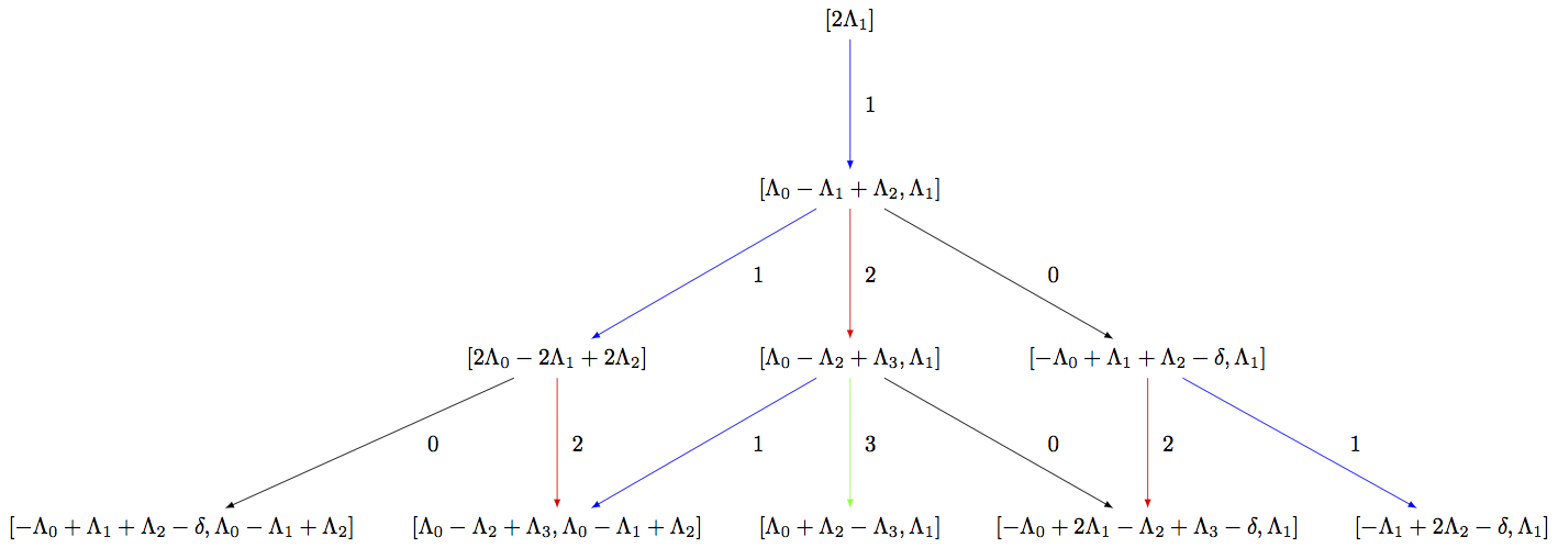 R = RootSystem(['C',3,1]) La = R.weight_space(extended = True).basis() LS = crystals.LSPaths(2*La[1]); LS LS.weight_lattice_realization() C = LS.subcrystal(max_depth=3) sorted(C, key=str) G = LS.digraph(subset = C) view(G, tightpage=True) # optional - dot2tex graphviz, not tested (opens external window)