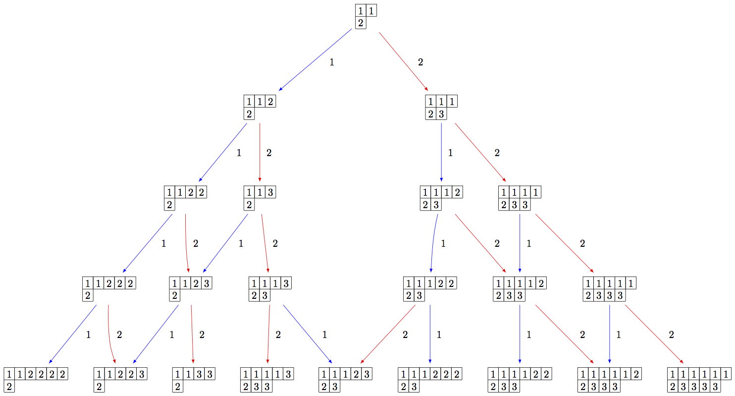 B = crystals.infinity.Tableaux(['A',2]) S = B.subcrystal(max_depth=4) G = B.digraph(subset=S) view(G, tightpage=True) # optional - dot2tex graphviz, not tested (opens external window)